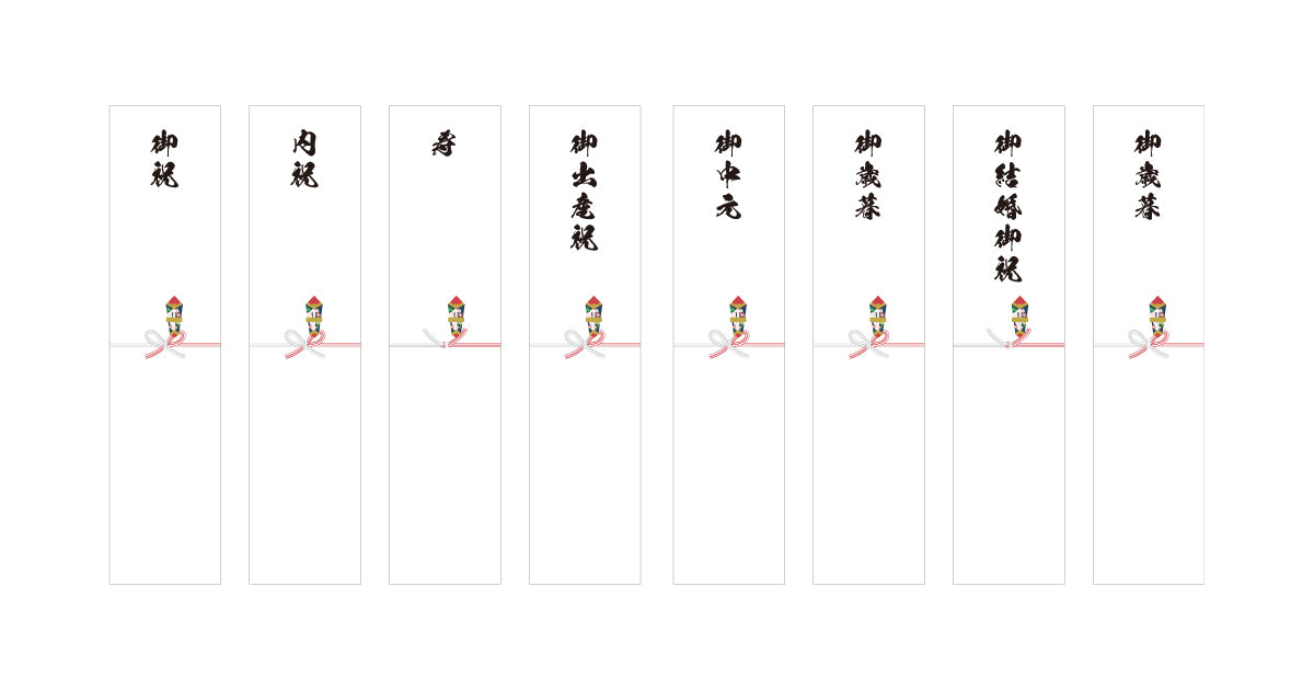 当店オリジナルデザインの熨斗をご用意しております。フォーマルからカジュアルなものまで、幅広く取り扱いがございます。
